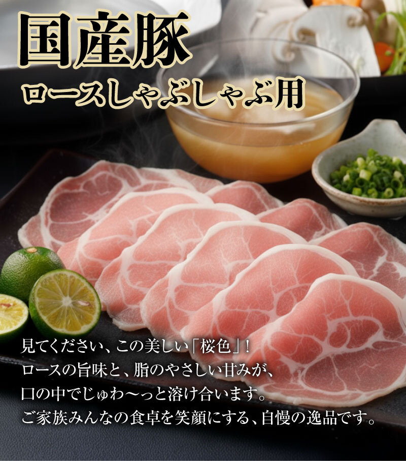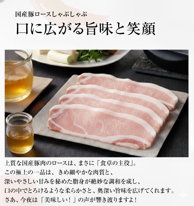 国産豚ロースしゃぶしゃぶは、手軽に本格的なしゃぶしゃぶを楽しむことができるお得な商品です。
